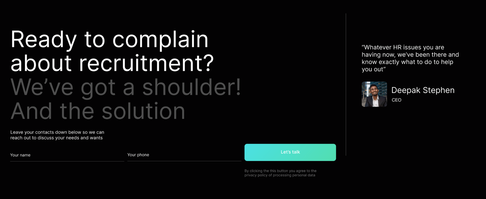The agency specializes in recruiting specialists in FinTech, therefore, it needed a sleek look, easy navigation, and transparency.